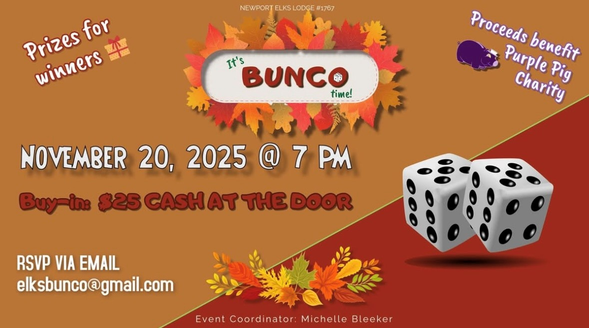 It’s Bunco Time! Thursday, November 20th, 2025 Buy-in is $25.00 per person, cash at the door The fun starts at